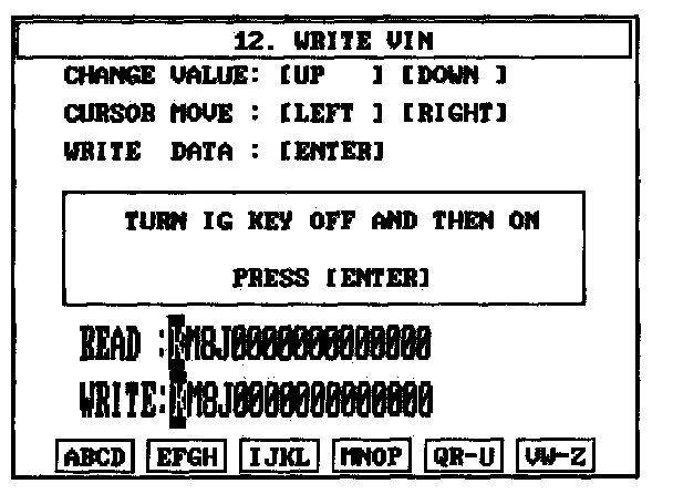 CAUTION: The programmed VIN cannot be changed. When writing the VIN, confirm the VIN carefully.