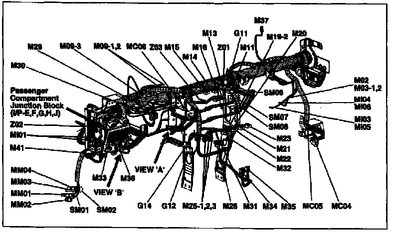 A junction block identification symbol consists of a wiring harness location classification symbol corresponding to a wiring harness location and number corresponding to the connector in the junction block.