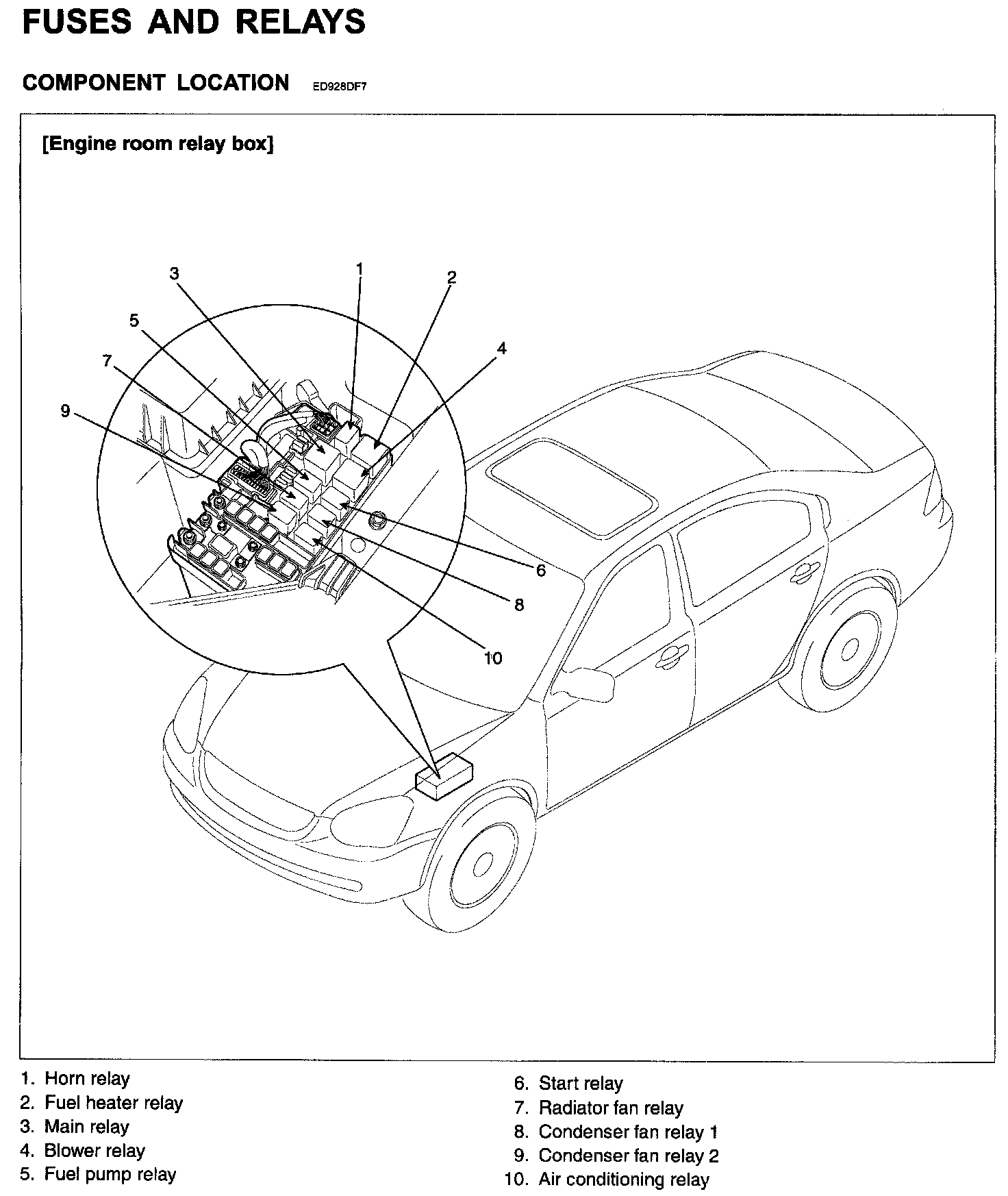 Fuses And Relays (Engine Room Relay Box) - Component Location: