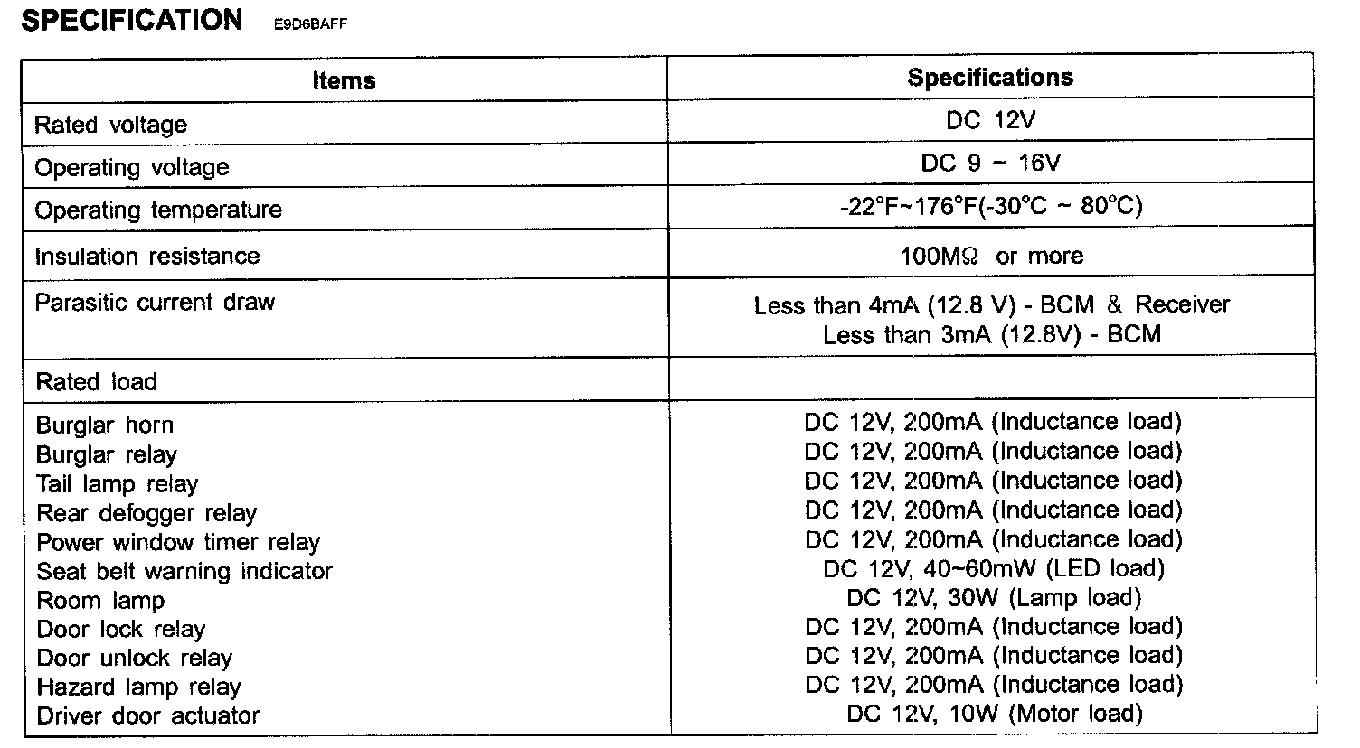 Specification - Body Control Module: