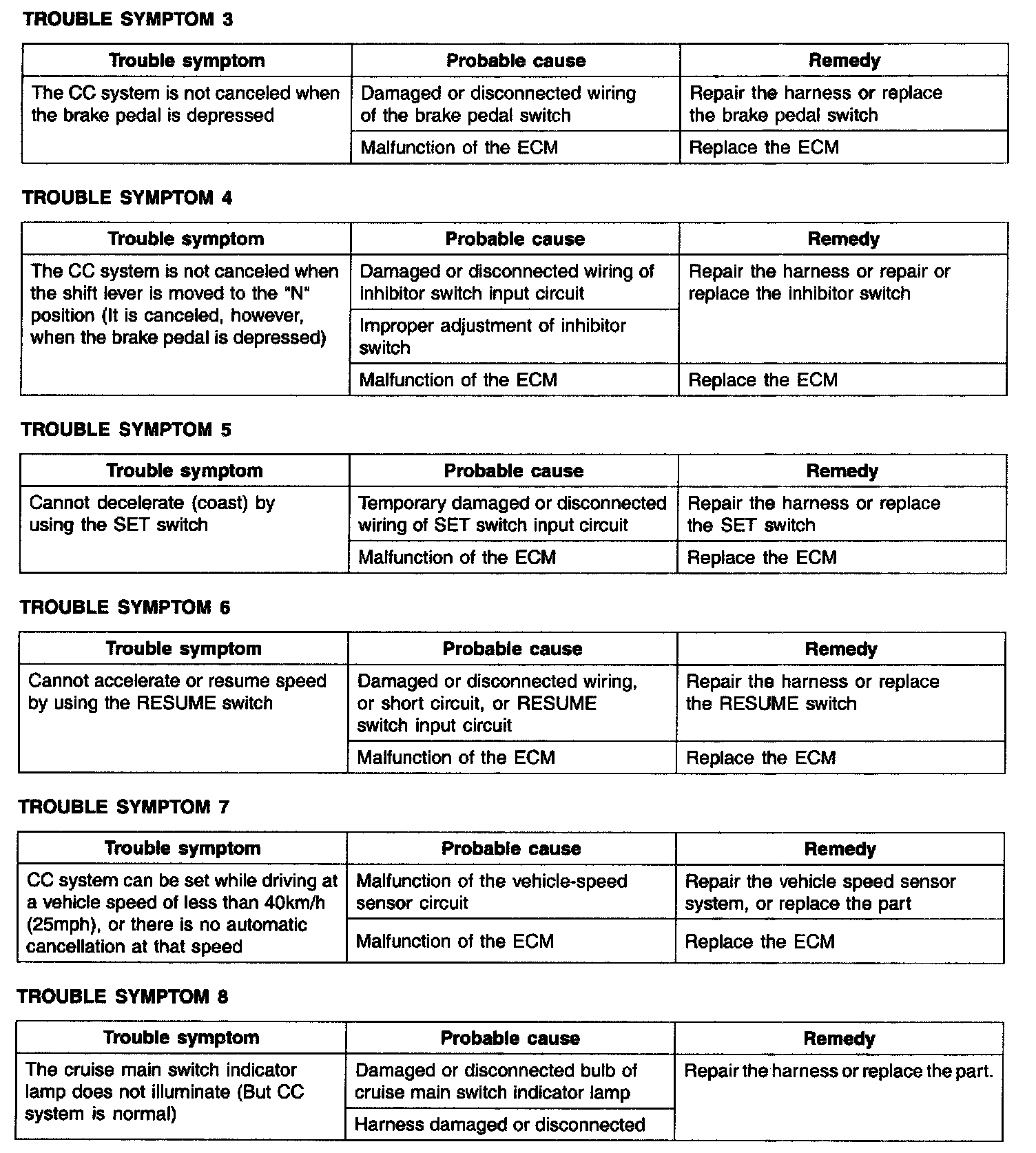 Trouble Symptom Charts (Part 1):