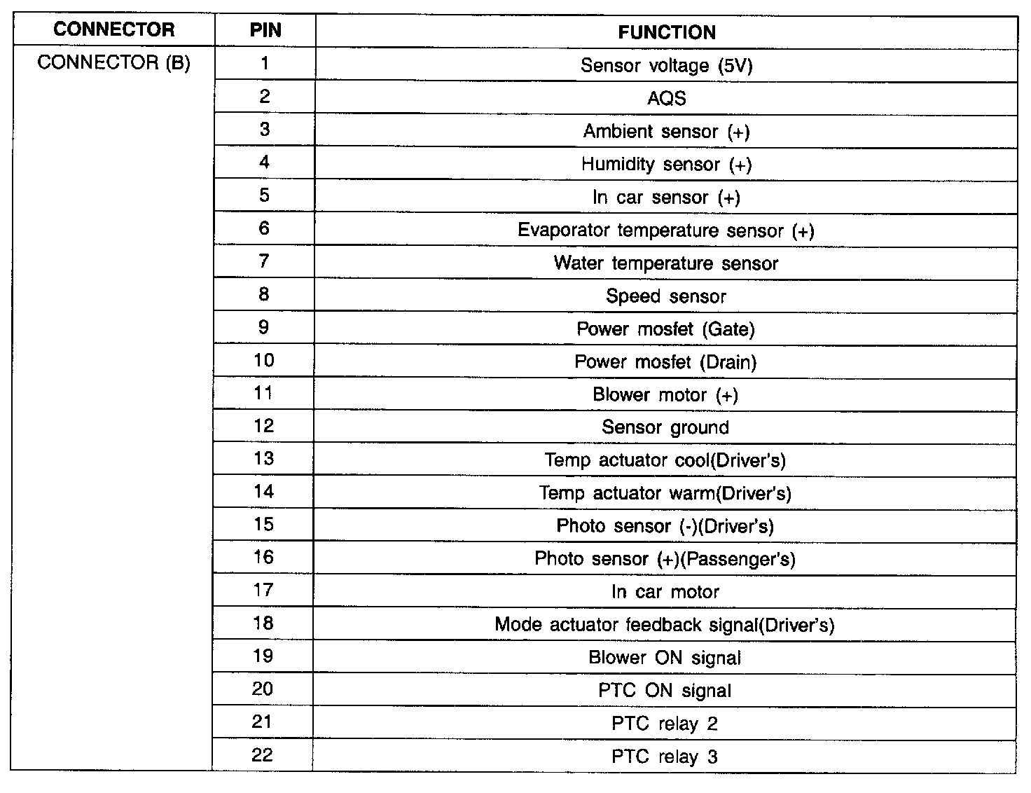 Connector Pin Function - Connector (B):