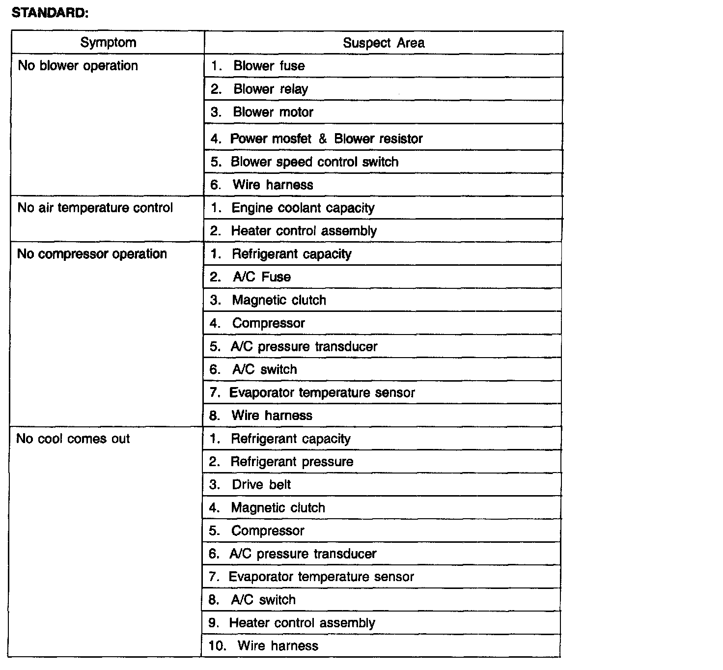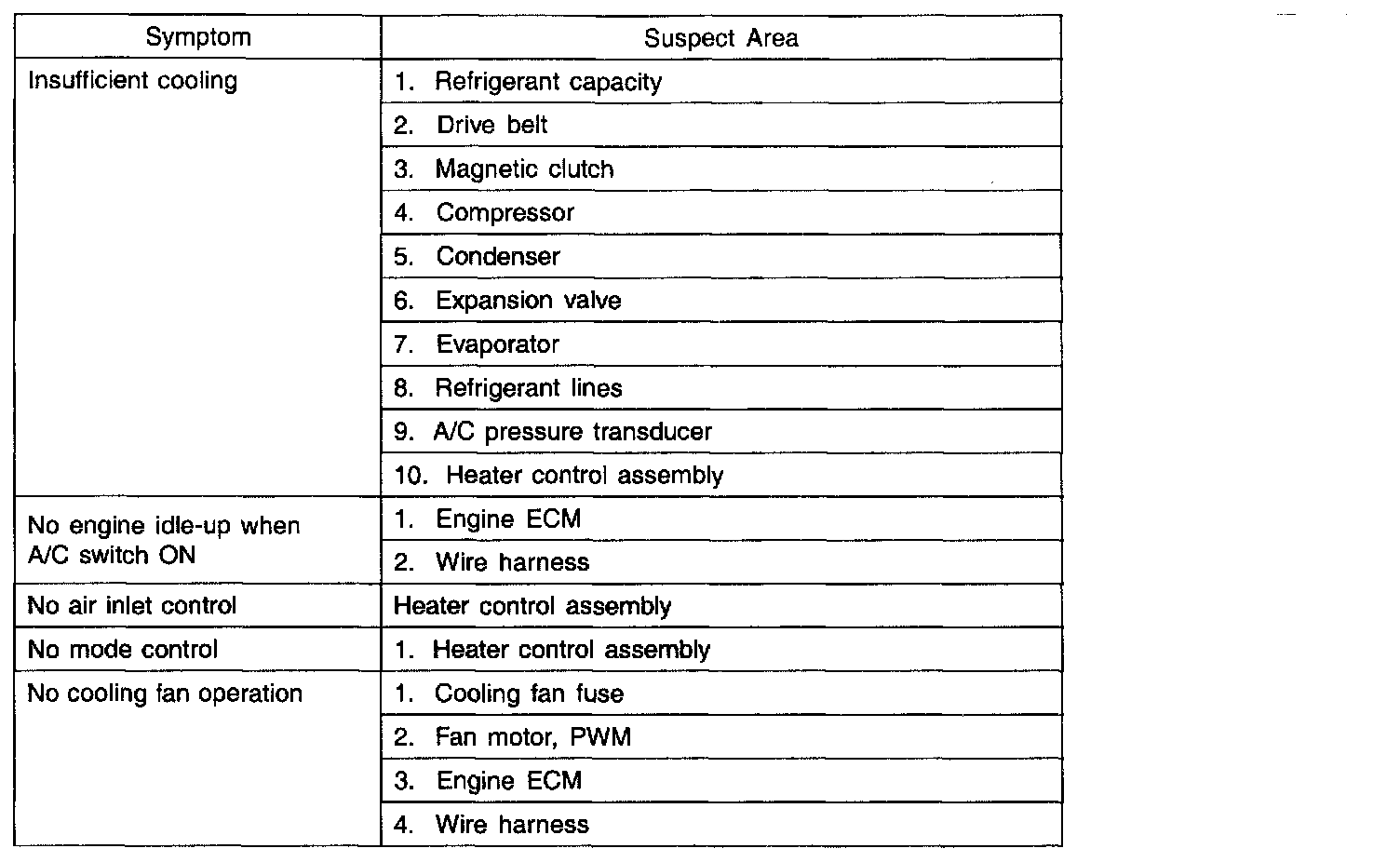 TROUBLESHOOTINGPROBLEM SYMPTOMS TABLE