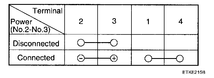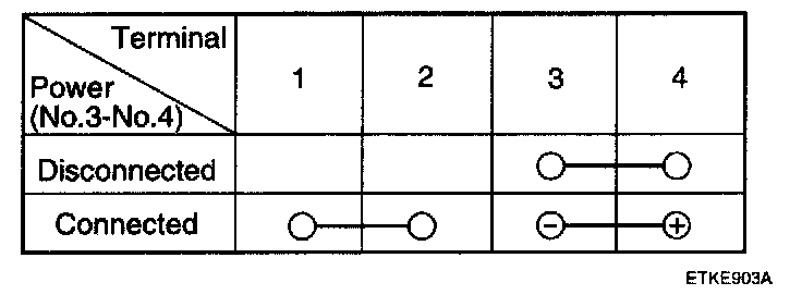 2. There should be no continuity between the No. 1 and No. 4 terminals when power is disconnected.