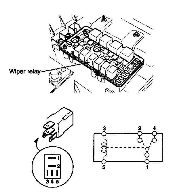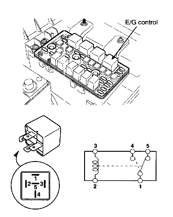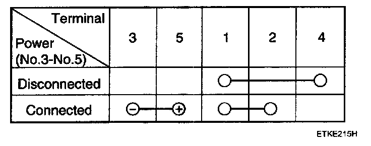 1. There should be continuity between the No. 1 and No. 2 terminals when power and ground are connected to the No. 3 and No. 5 terminals.