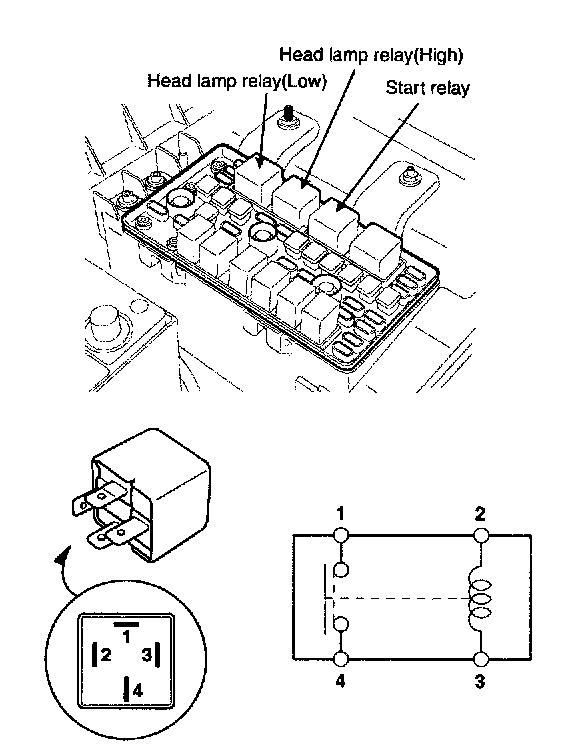 1. There should be continuity between the No. 1 and No. 4 terminals when power and ground are connected to the No. 2 and No. 3 terminals.