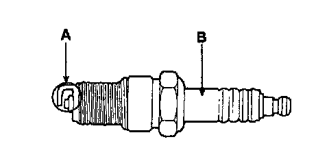 4. Inspect the electrodes (A) and ceramic insulator (B).