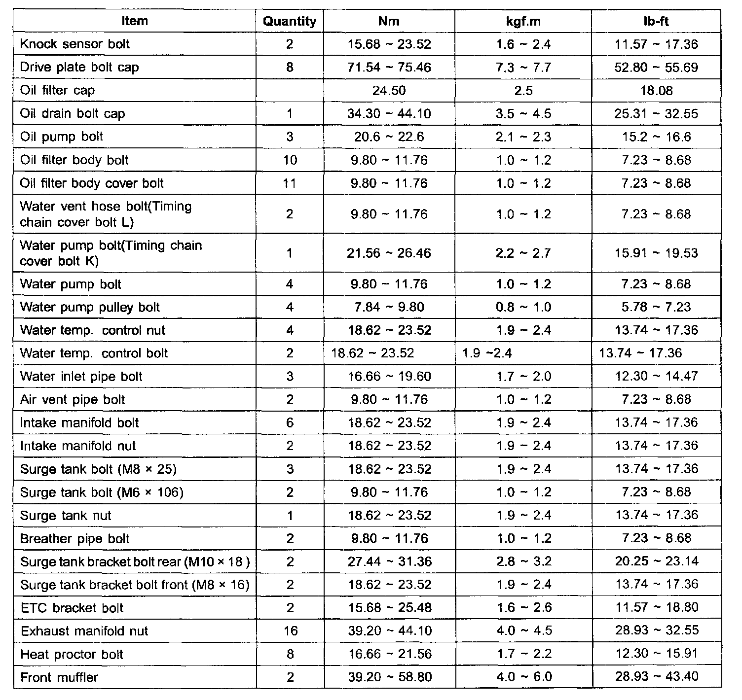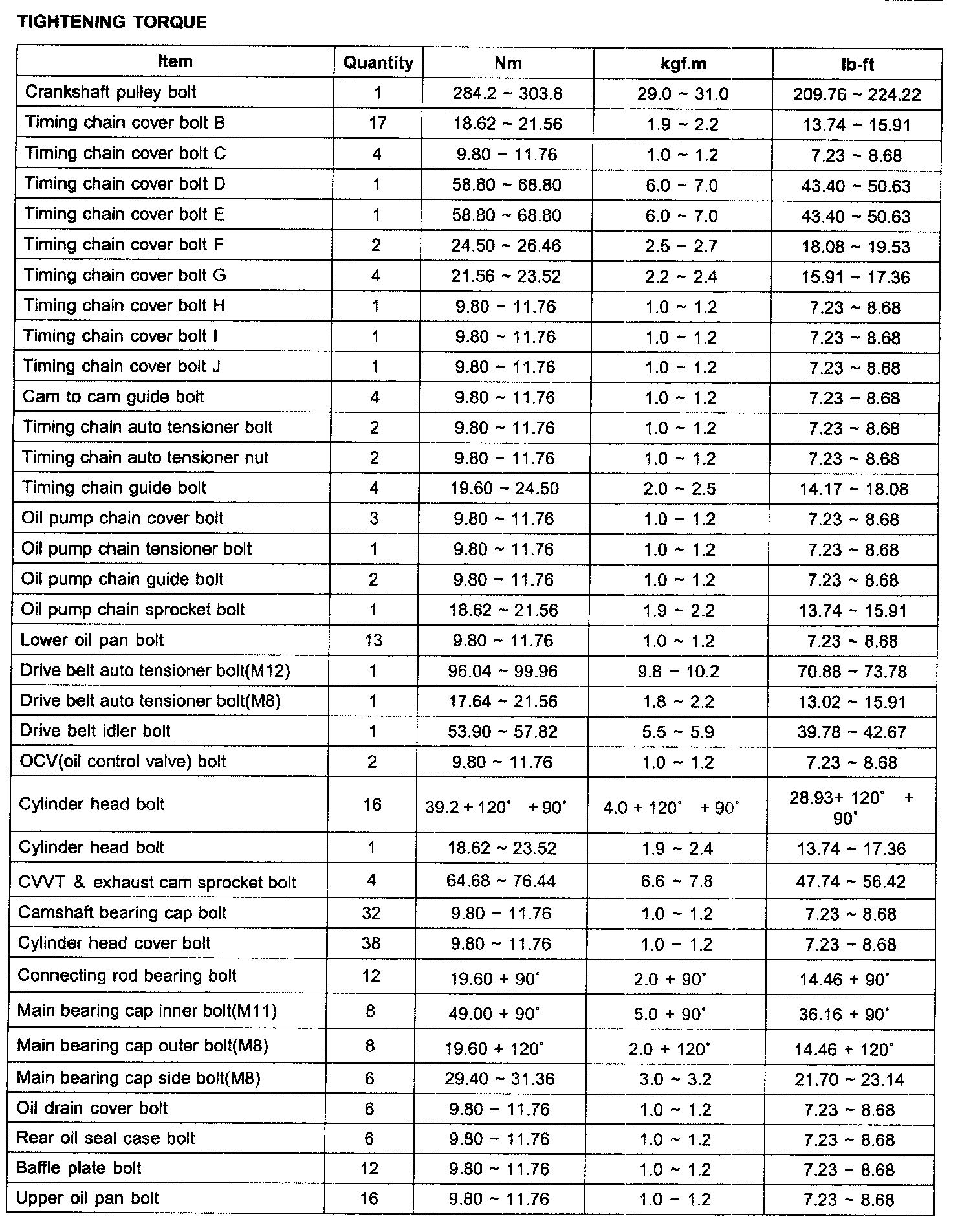 TIGHTENING TORQUE: