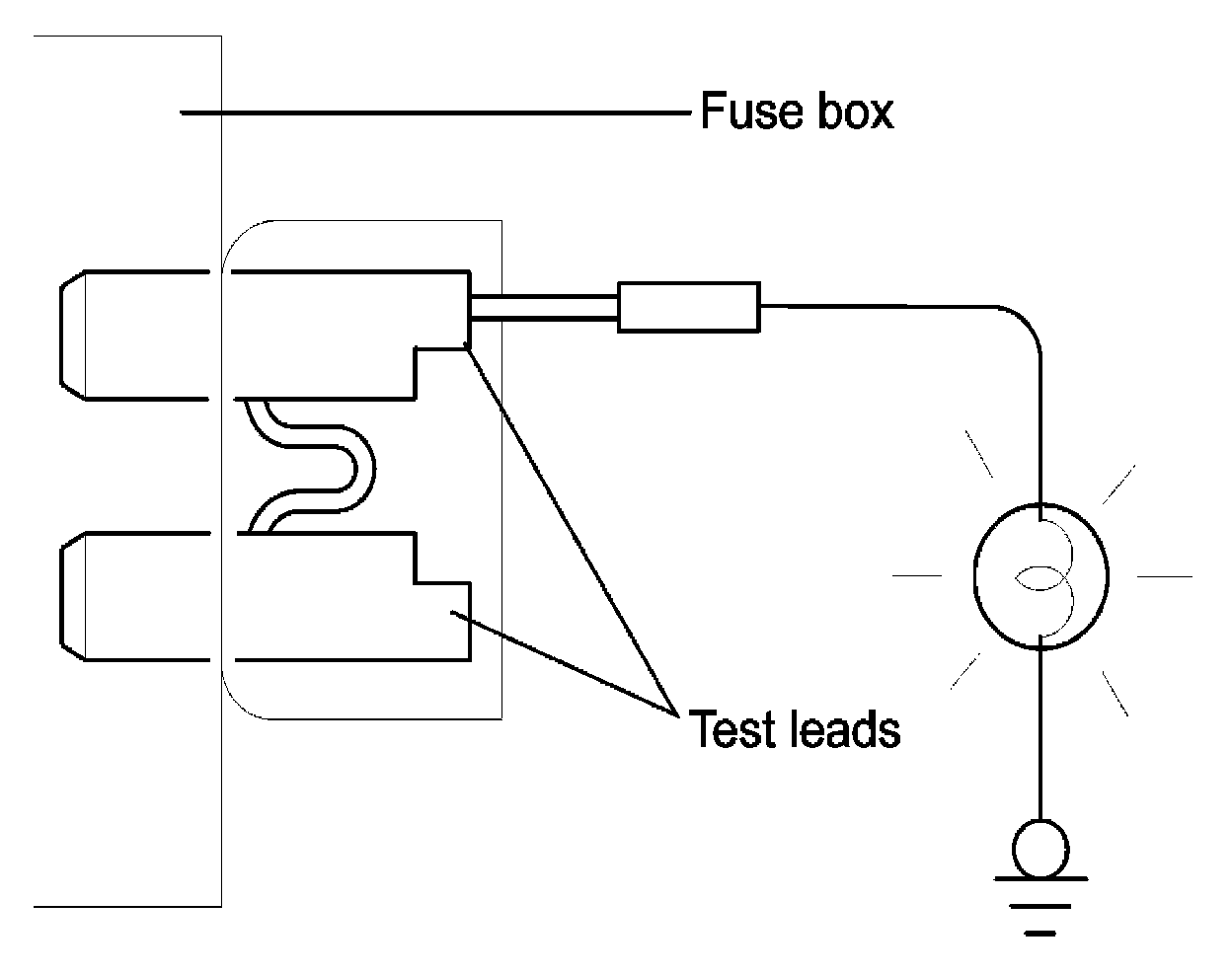 A blade type fuse test taps provided to allow checking the fuse itself without removing if from the fuse box. The fuse is good if the test lamp lights up when one lead is connected to the test taps (one at a time) and the other lead is grounded. (Turn the ignition switch so that the fuse circuit becomes operative)