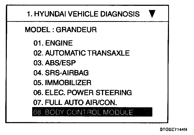 2. Select option "BODY CONTROL MODULE" and press ENTER.