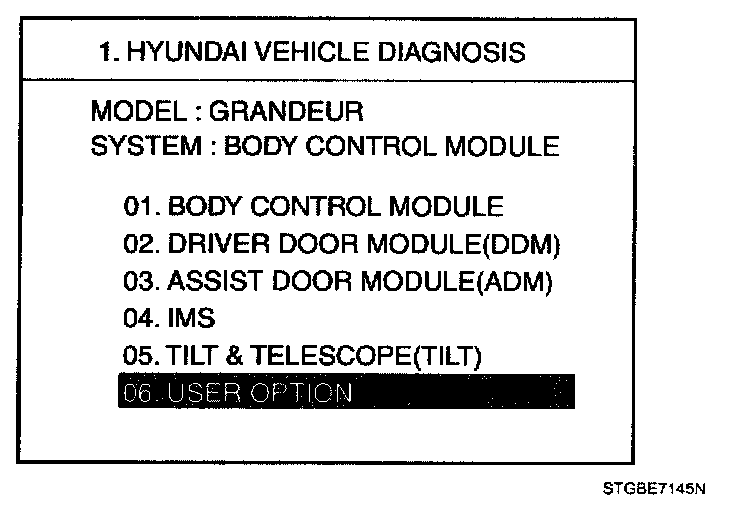 The BCM offers 4 items user option mode for a user convenience (LOCK/UNLOCK ALARM, AUTO DOOR LOCK, GET IN & GET DOWN LINKAGE, ARM/DISARM BY KEY)