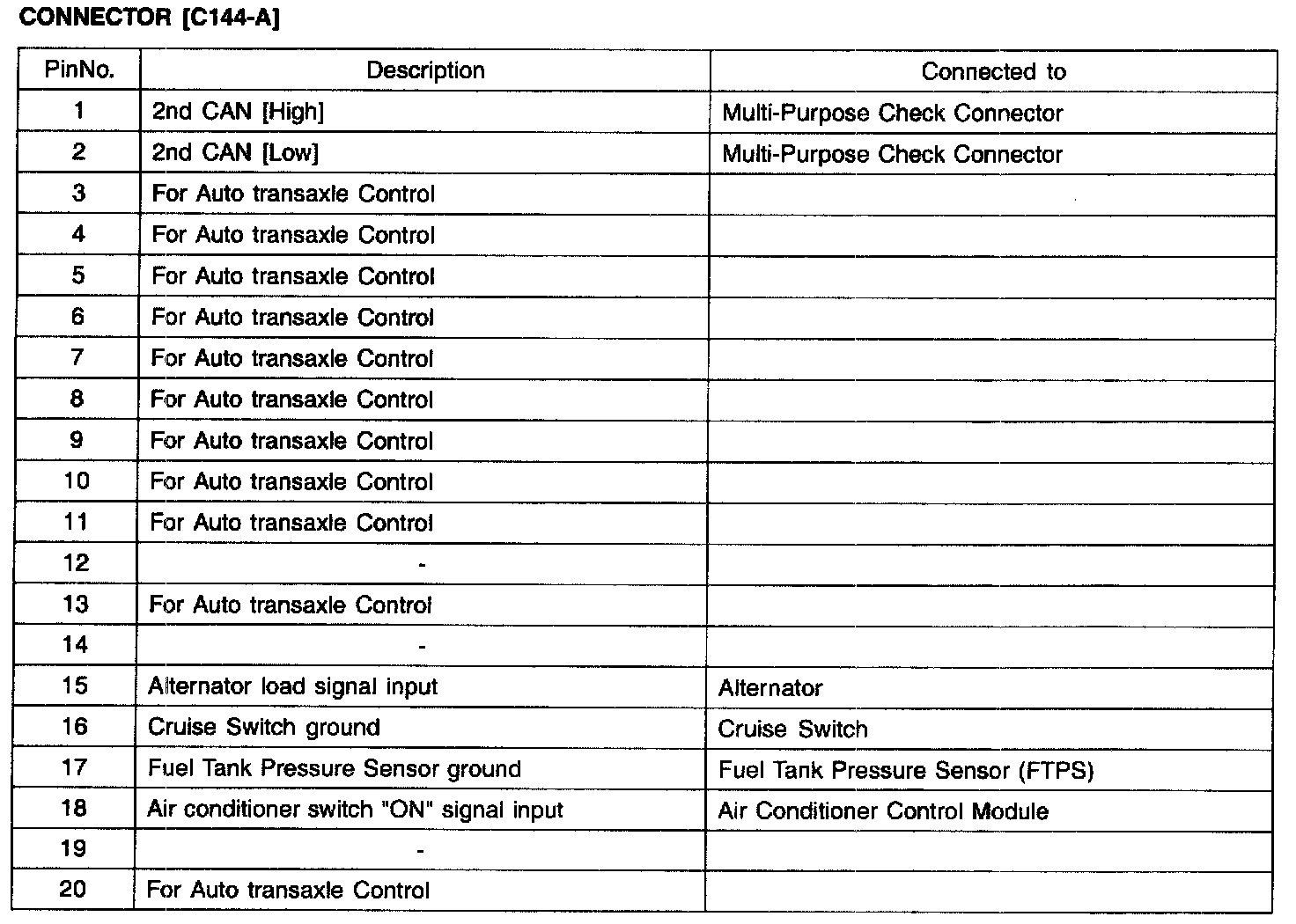 PCM Terminal Function - Connector [C144-A] Part 2: