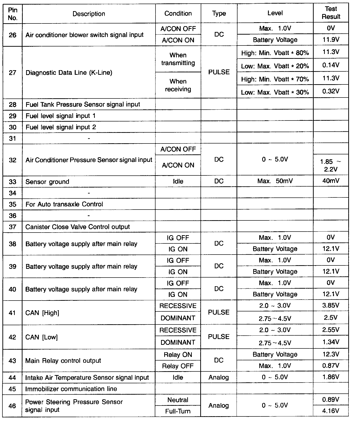 PCM TERMINAL INPUT/OUTPUT SIGNAL - CONNECTOR [C144-A]