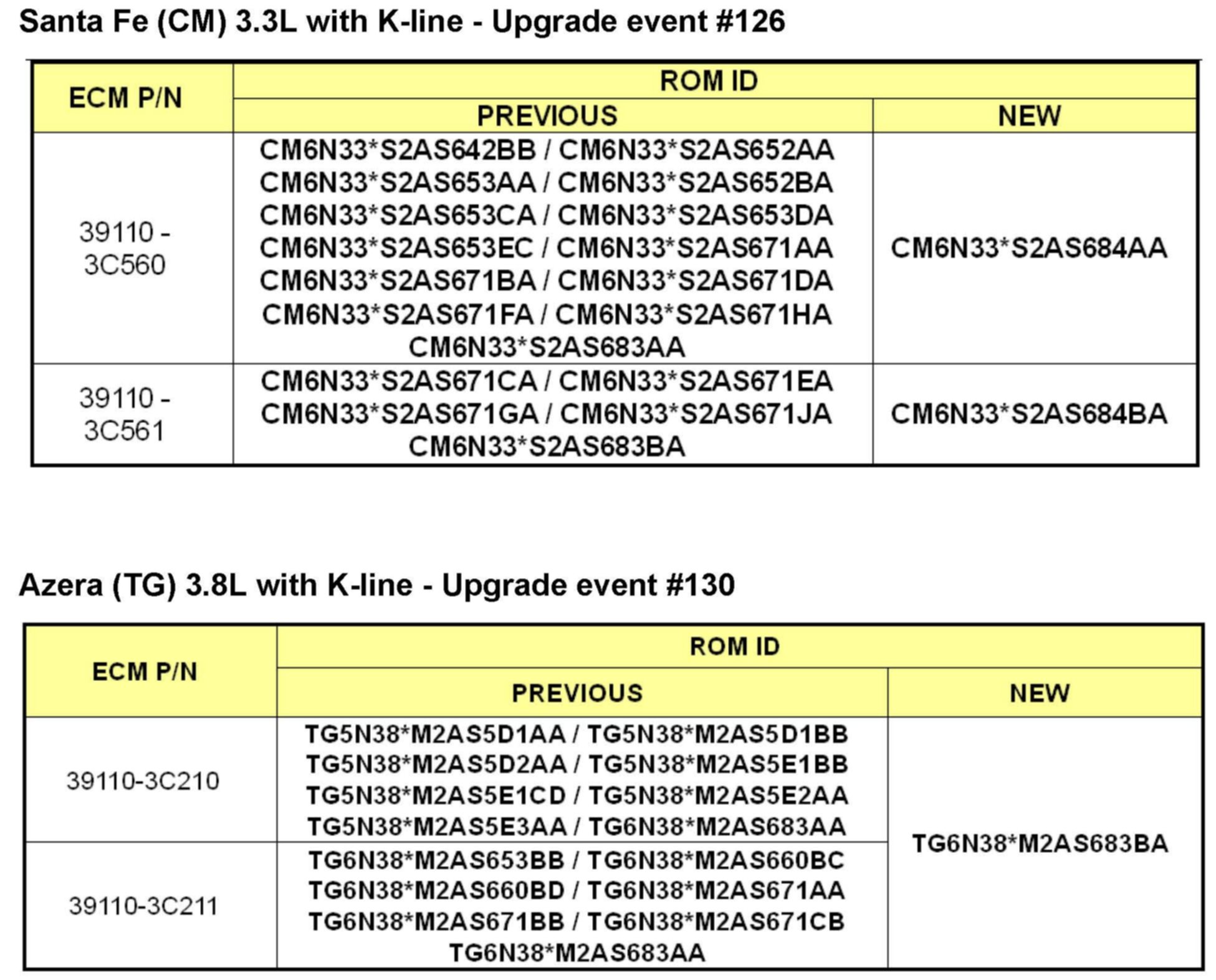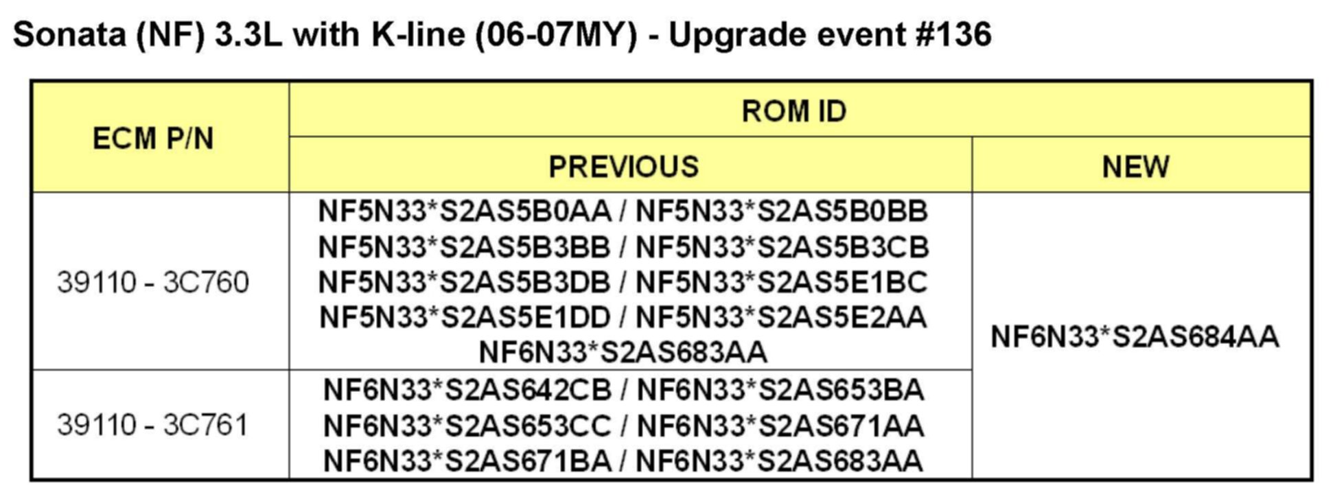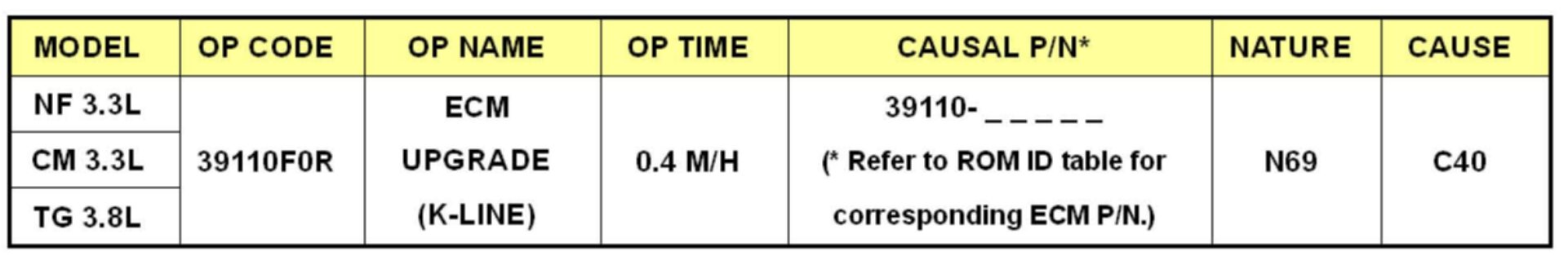 To verify the vehicle is affected, be sure to check the version of the vehicle's engine control unit ROM ID with reference to the ROM ID Information Table mentioned below before attempting to update the control unit software.