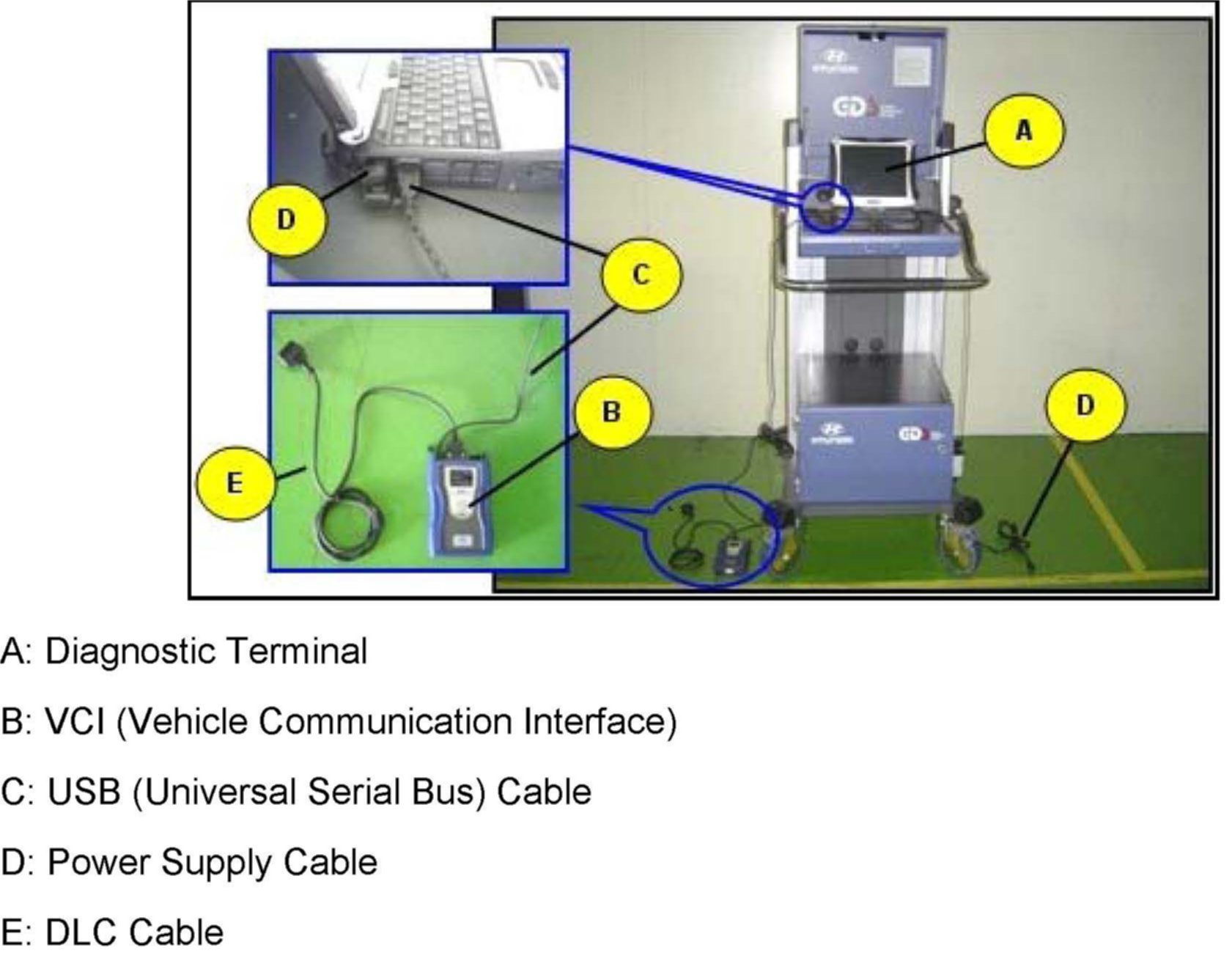2. Connect the USB cable between the VCI and the diagnostic terminal.