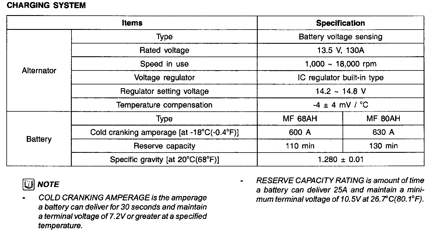 Charging System - Specification: