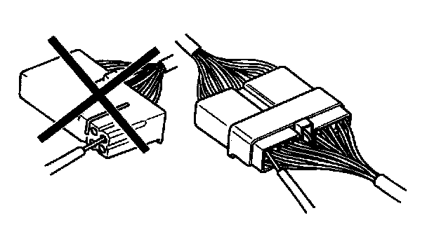 e. Check waterproof connector terminals from the connector side. Waterproof connectors cannot be accessed from harness side.