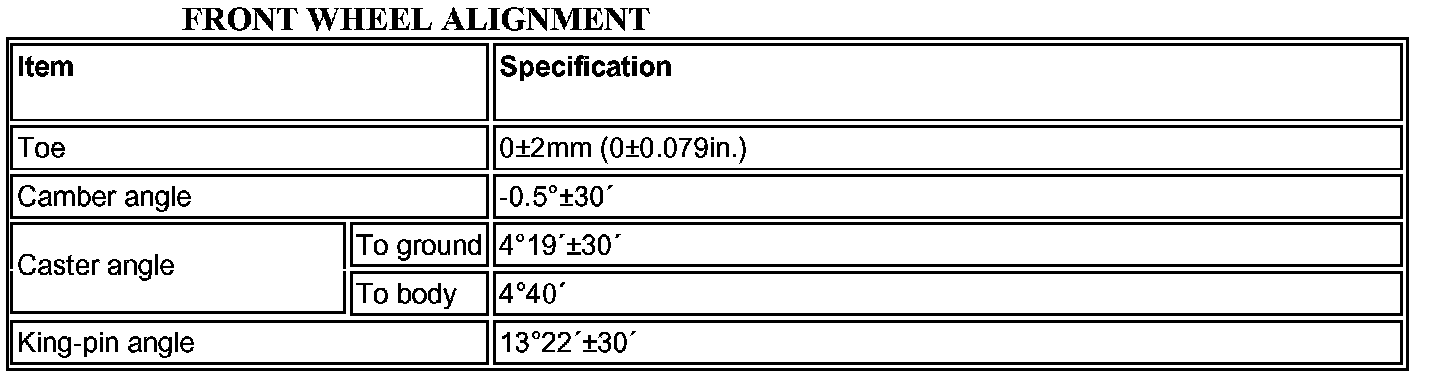 Front Wheel Alignment Specifications