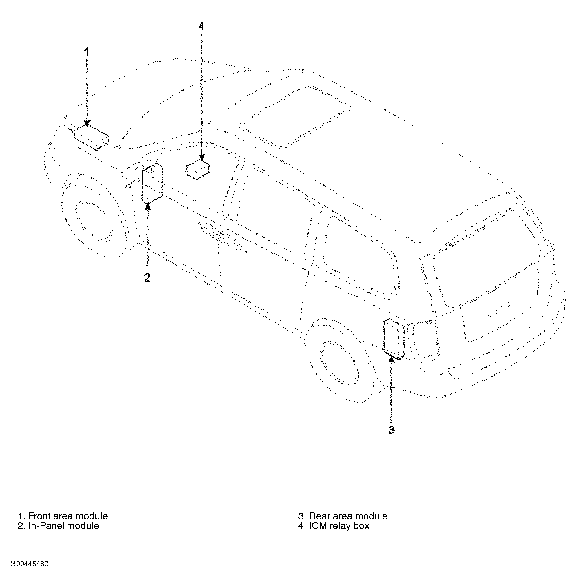 | RAM (Rear Area Module) (3) | Left rear corner of vehicle. See Figure. |