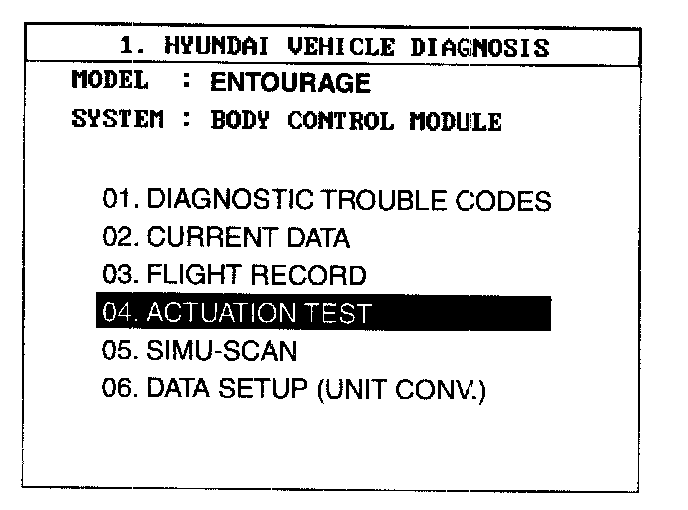 2. To diagnose the BCM function, select the menu of model and body control module.