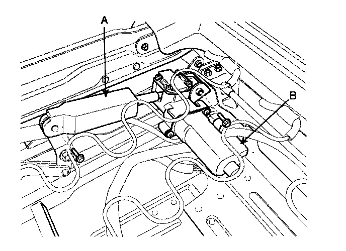 3. Remove the seat heater module (B) after removing seat heater module mounting screw (2EA) and connector from rear height motor (A).