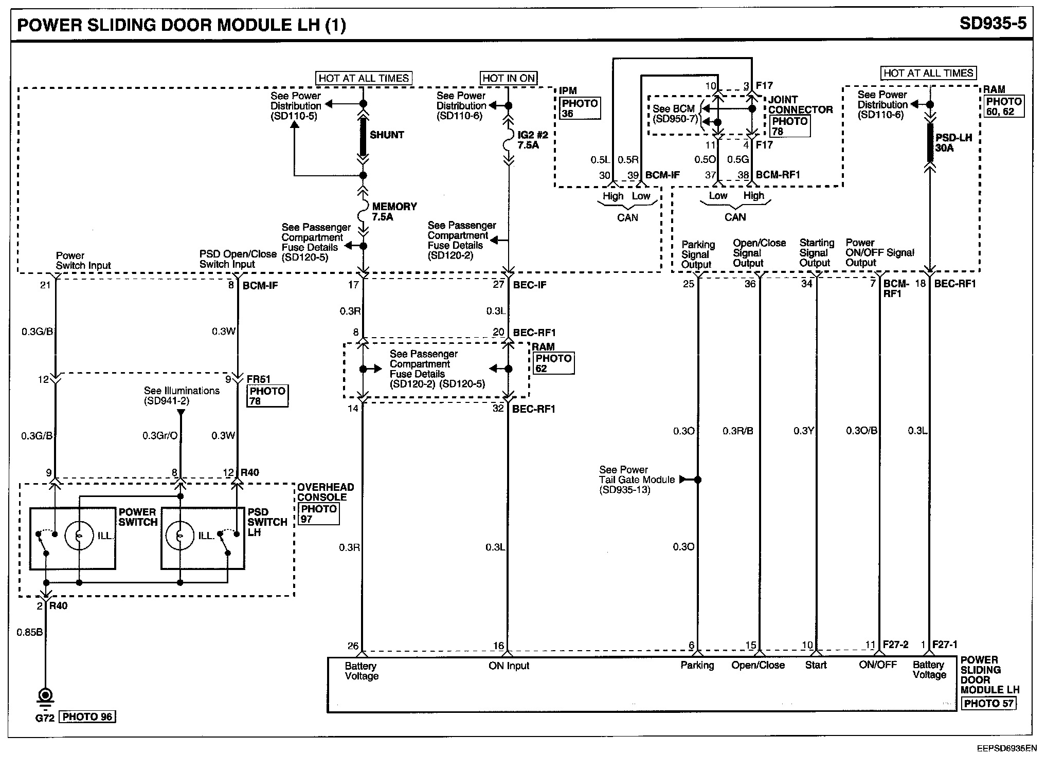 Power Sliding Door Module LH Connector Pin Outs: