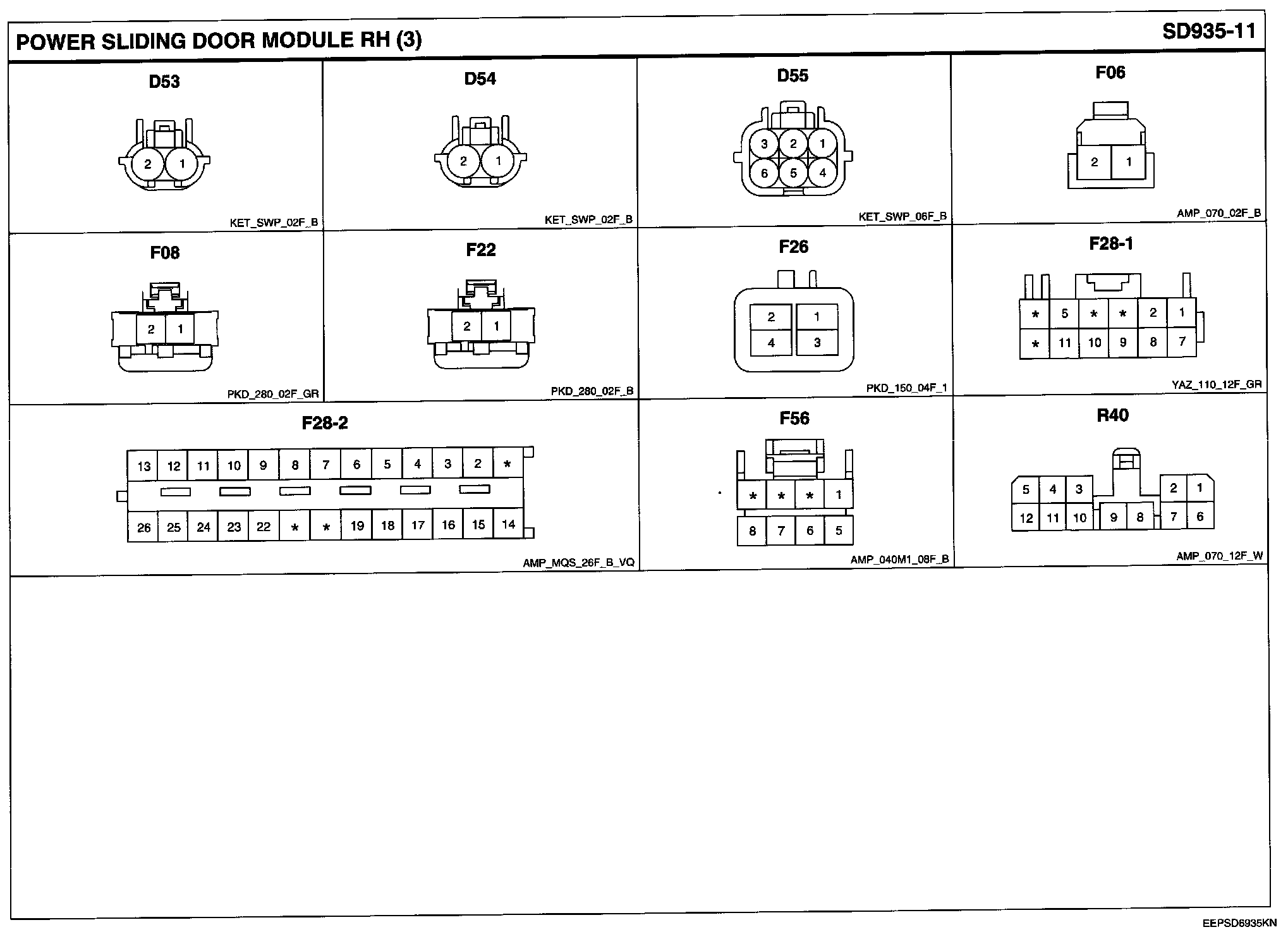 Power Sliding Door Module RH Connector Pin Outs: