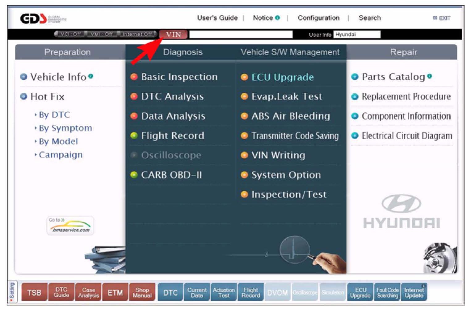 You must have an internet connection to GDS to be able to receive any updated data; the bright blue "Internet On" should illuminate to the left of the VIN button.