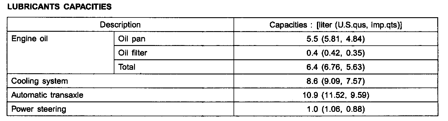 Lubricants Capacities: