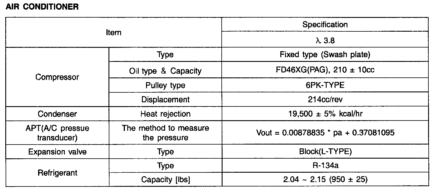 Specification - Air Conditioner: