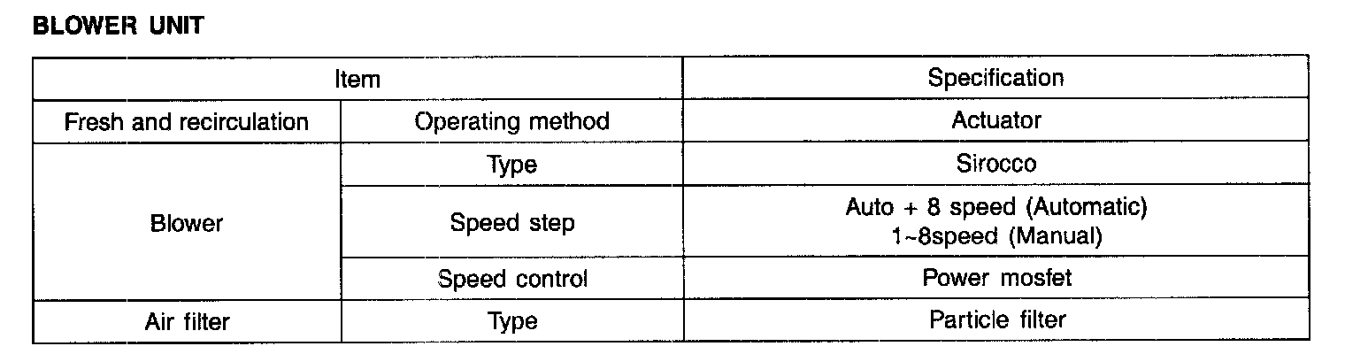 Specification - Blower Unit: