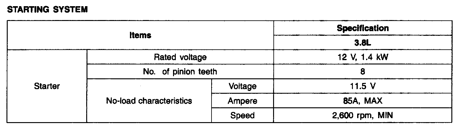 Specification - Starting System: