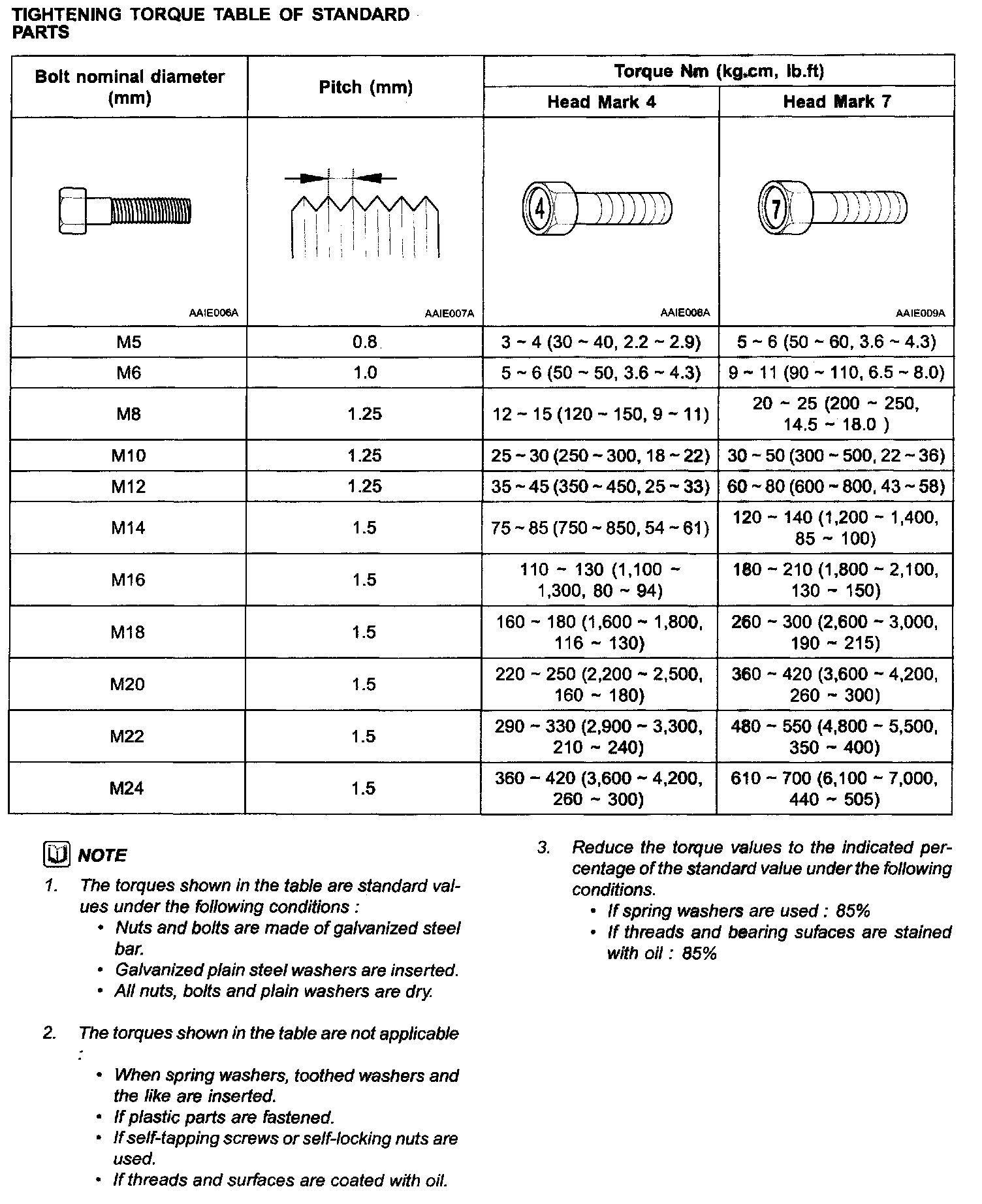 Tightening Torque Table Of Standard Parts: