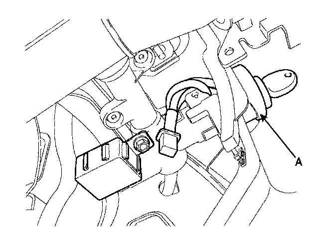 4. Remove the ignition switch (A) after loosening the screw with IG ON and disconnecting the 6P connector.
