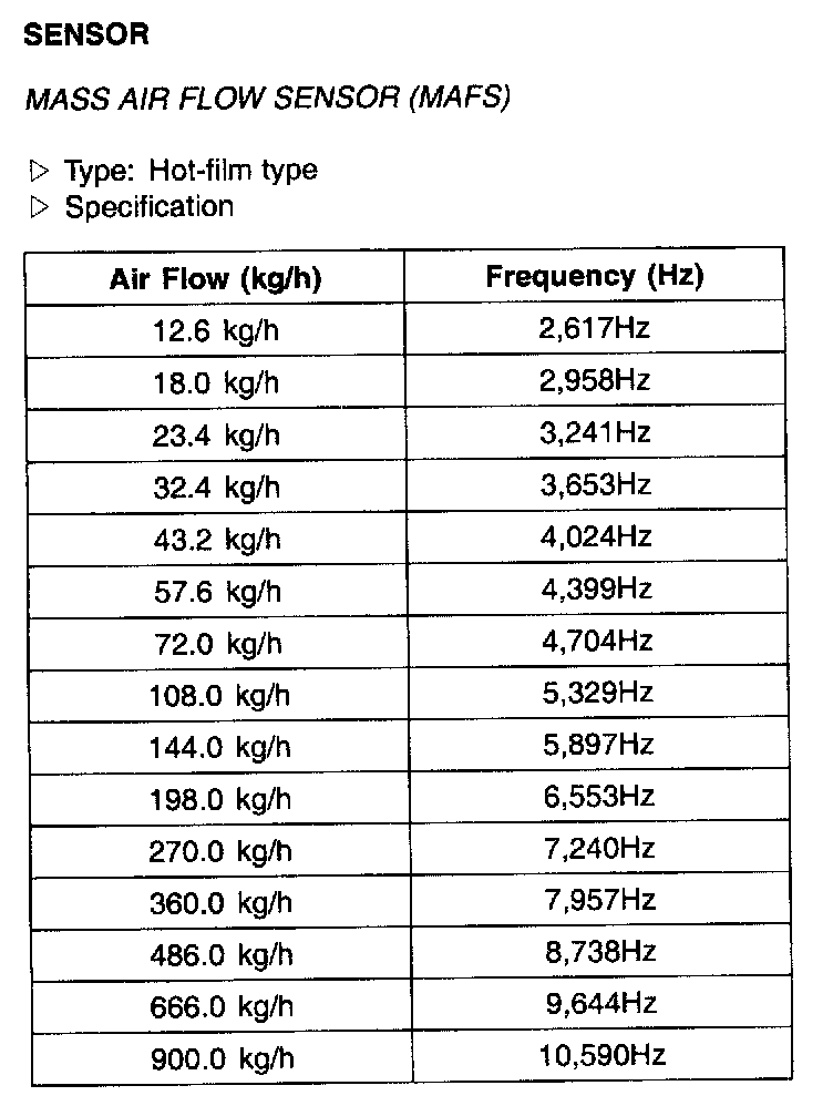 Mass Air Flow Sensor(MAFS) - Specification: