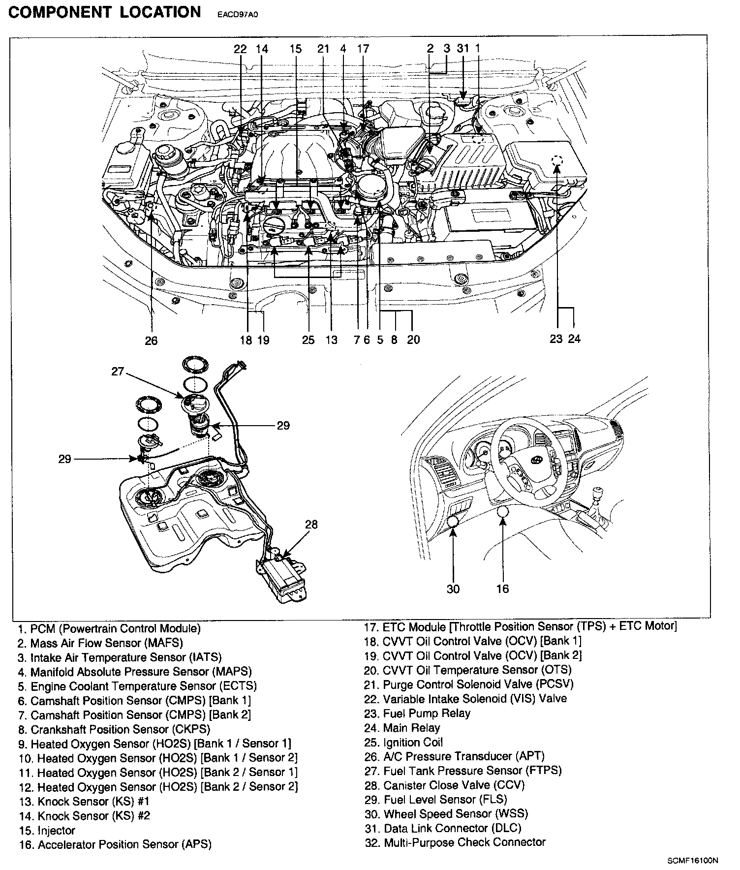 Gasoline Engine Control System - Component Location: