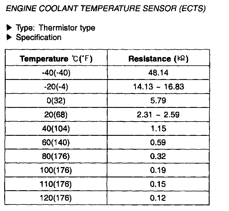 Engine Coolent Temperature Sensor (ECTS) - Specification: