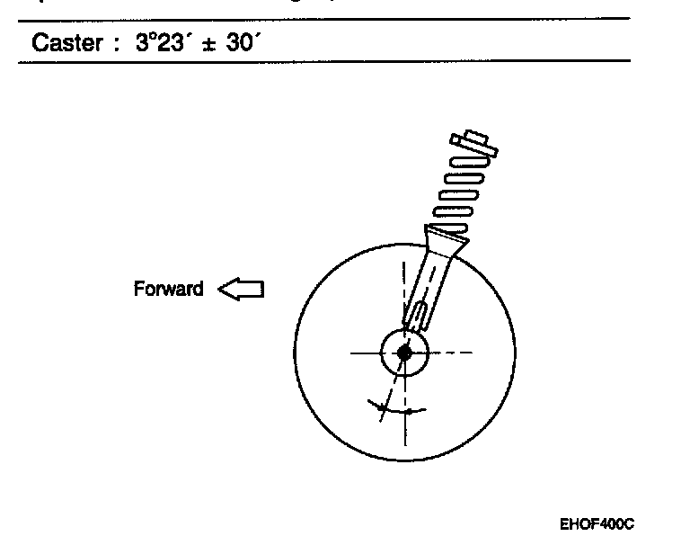 FRONT WHEEL ALIGNMENTWhen using a wheel alignment tester to inspect the front wheel alignment, always position the car on a level surface with the front wheels facing straight ahead. Prior to inspection, make sure that the front suspension and steering system are in normal operating conditions and that the wheels and tires face straight ahead and the tires are inflated to the specified pressure.