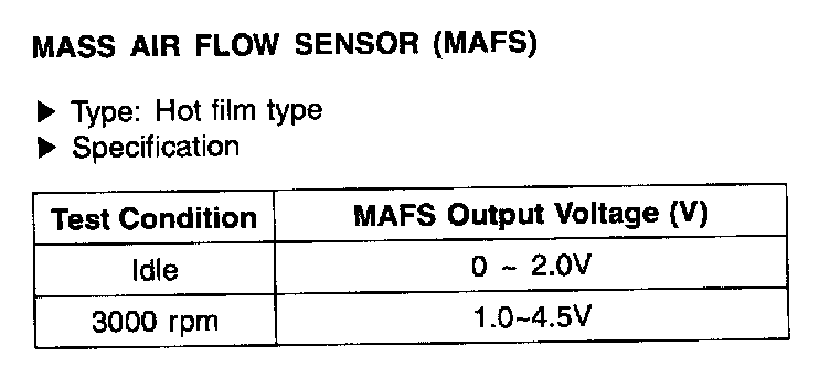 Mass Air Flow Sensor(MAFS) - Specification: