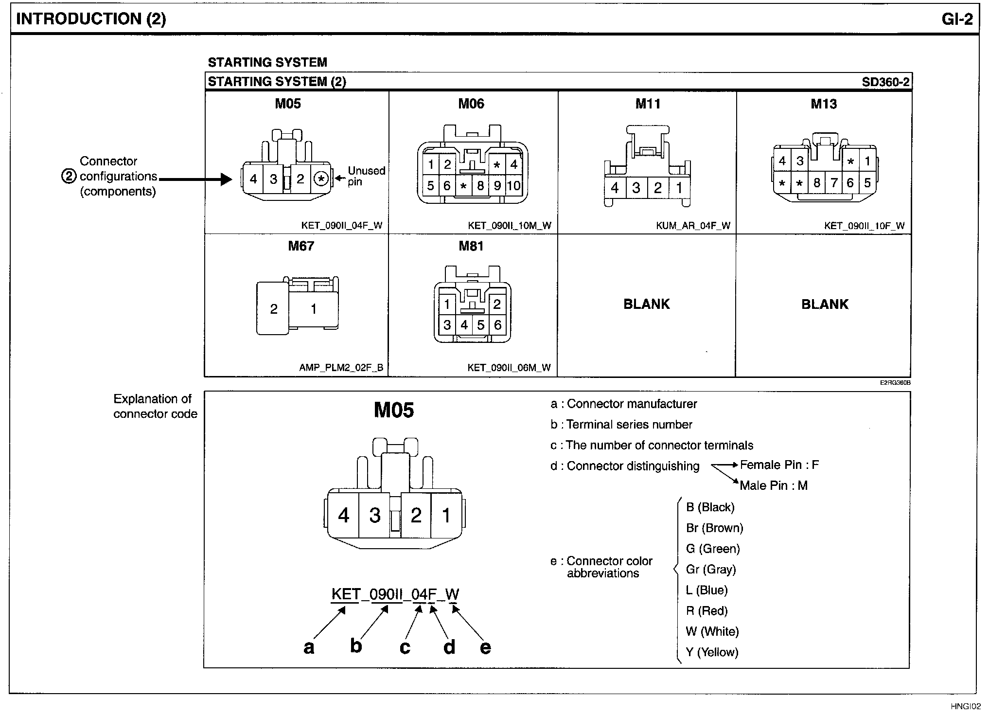 - It shows the front of the connector on the harness side when not to the harness connector. The terminal number on each connector can be obtained by following the pattern used in 05 connector view and numbering order. Unused terminals are marked with an asterisk (*).
