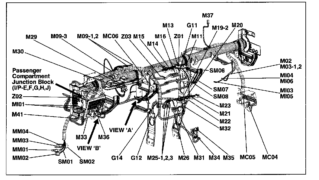 A junction block identification symbol consists of a wiring harness location classification symbol corresponding to a wiring harness location and number corresponding to the connector in the junction block.