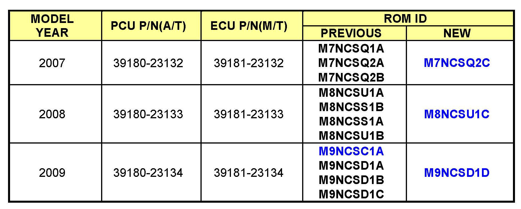 ^ Production date range: June 7, 2006 June 26, 2009 ECM ROM ID INFORMATION: