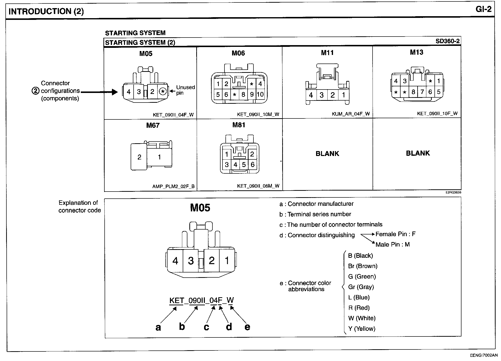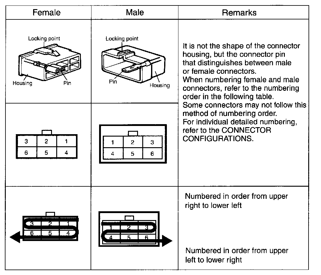 - It shows the front of the connector on the harness side when not to the harness connector. The terminal number on each connector can be obtained by following the pattern used in 05 connector view and numbering order. Unused terminals are marked with an asterisk (*).