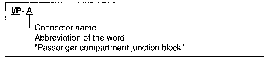 A junction block identification symbol consists of a wiring harness location classification symbol corresponding to a wiring harness location and number corresponding to the connector in the junction block.