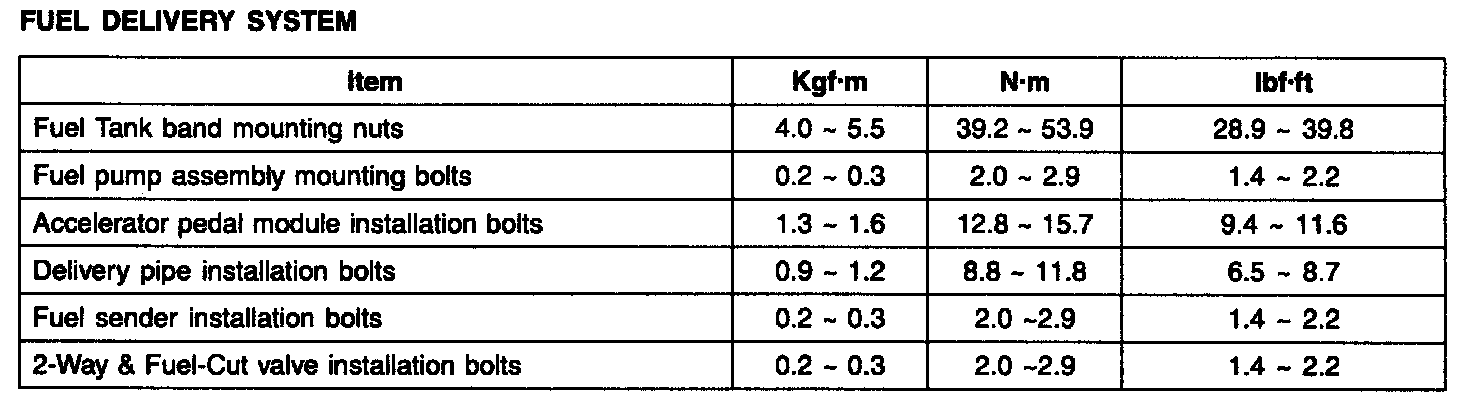 Tightening Torques - Fuel Delivery System: