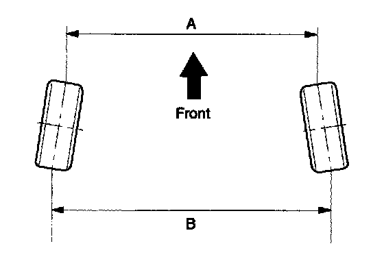 Toe-in(B-A) is adjusted by turning the tie rod turnbuckles. Toe-in on the left front wheel can be reduced by turning the tie rod toward the rear of the car. Toe- in change is adjusted by turning the tie rods for the right and left heels simultaneously at the same amount as follows.