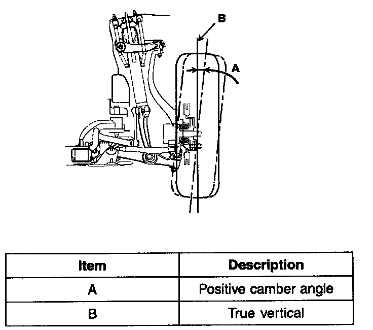 ^ The worn loose or damaged parts of the front suspension assembly must be replaced prior to measuring front wheel alignment.