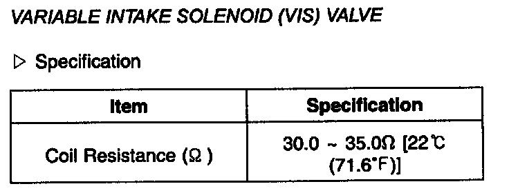 Variable Intake Solenoid (VIS) Valve - Specification: