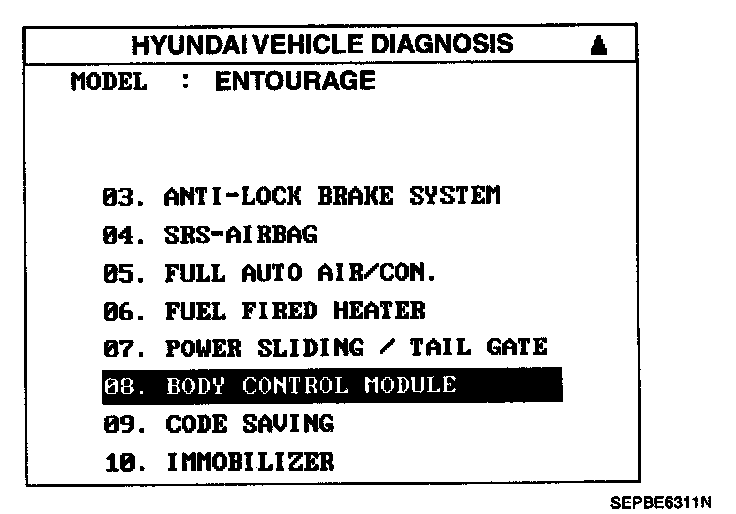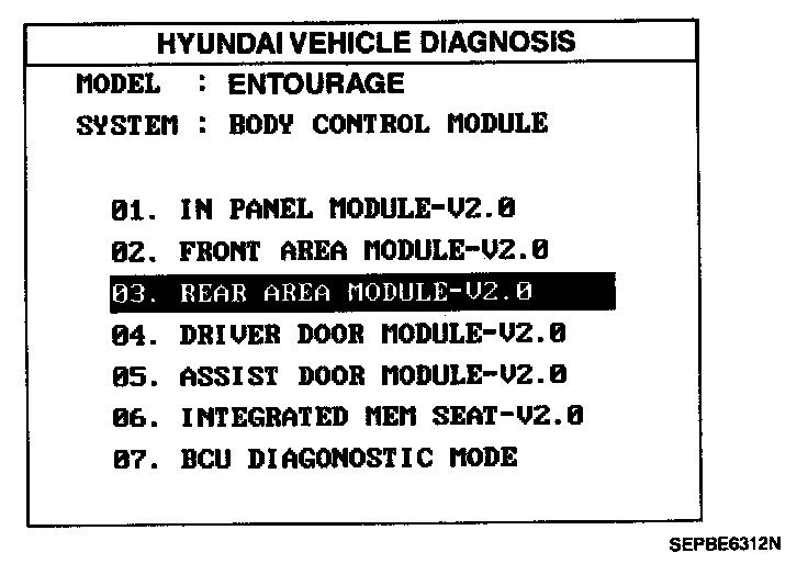 2. To diagnose the BCM function, select the menu of model and body control module.