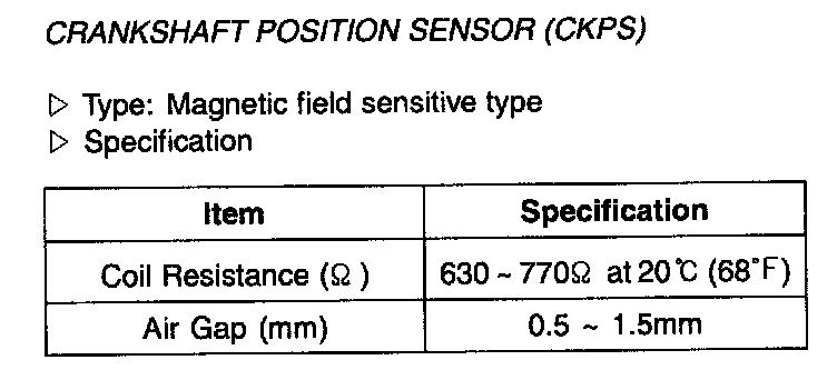Crankshaft Position Sensor (CKPS) - Specification: